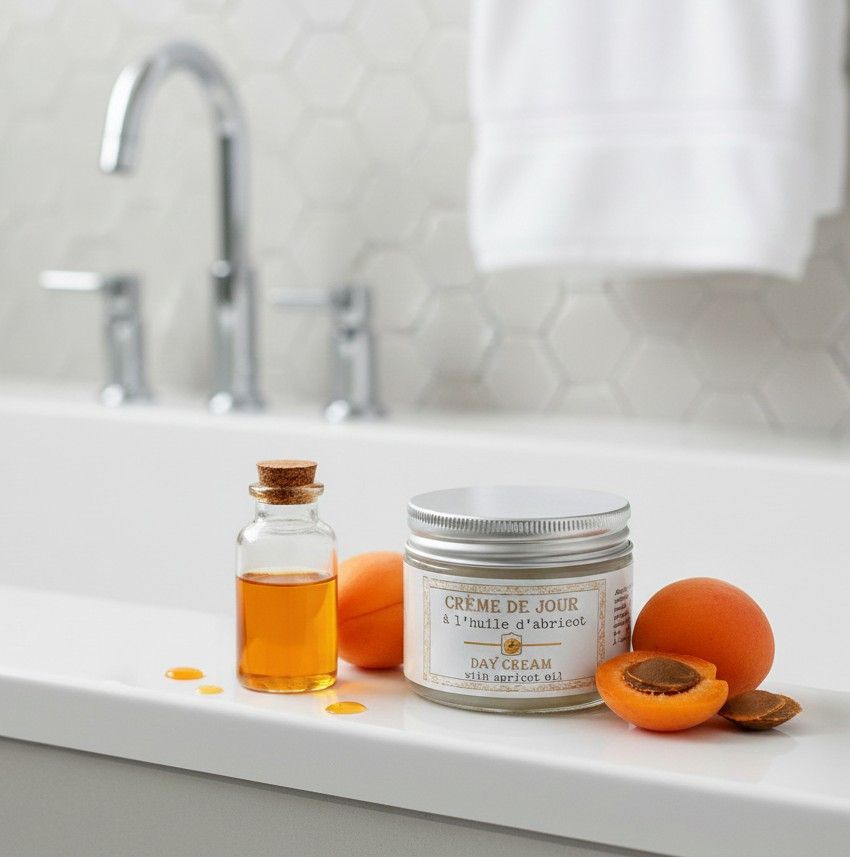 Elaborée à partir d'huile de pépin de raisin (utilisée en ), notre crème de jour est faite pour maintenant votre peau en bon état. L'huile de noyaux d'abricot contenu dans ce produit (plus de 7%), permet un effet anti-âge et hydratant. Il est conseillé pour les peaux fatiguées au teint terne. Nous utilisons également un conservateur pour votre bien être.