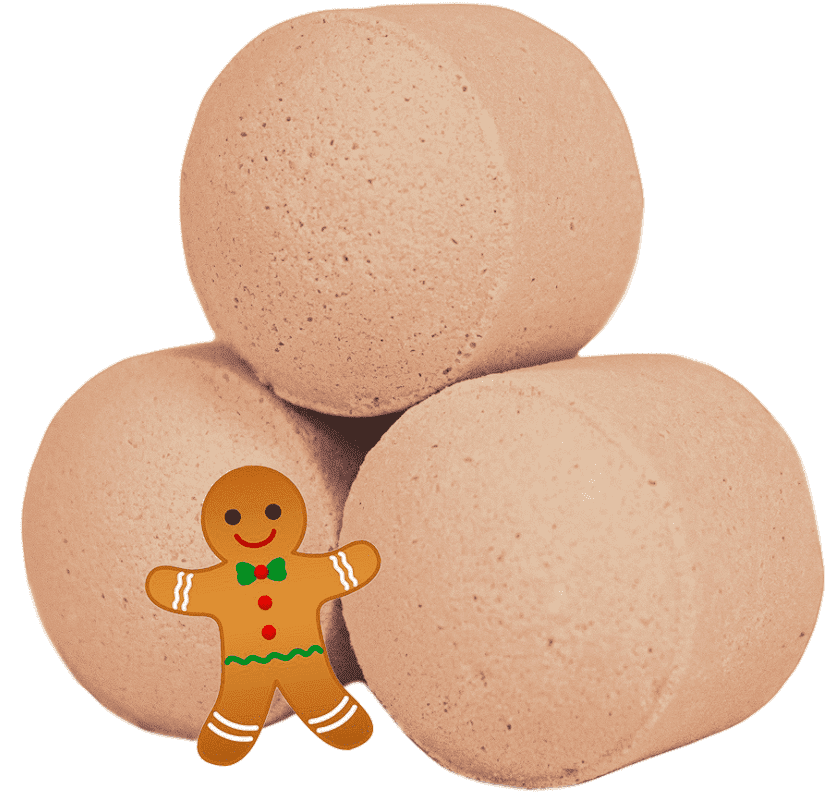 Mini effervescent au parfum doux et sucré, parfait pour un bain festif et réconfortant pendant les fêtes.