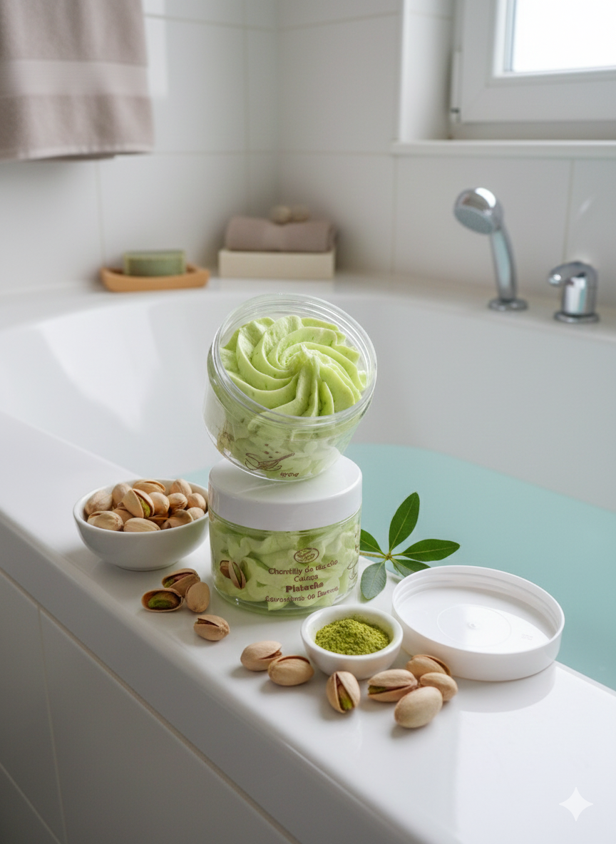 Transformez votre routine de soin en une expérience gourmande avec notre Chantilly de Douche et Bain au parfum irrésistible de Pistache. Sa texture légère et onctueuse nettoie délicatement la peau, la laissant douce, hydratée et subtilement parfumée. Idéale pour une utilisation sous la douche ou dans le bain, elle offre un moment de pur plaisir sucré.