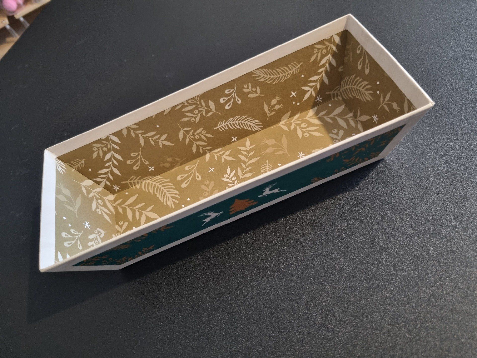 Ce panier de Noël de forme rectangulaire (dimensions : 20 x 7 x 6 cm) est idéal pour composer un cadeau unique avec les produits de votre choix.