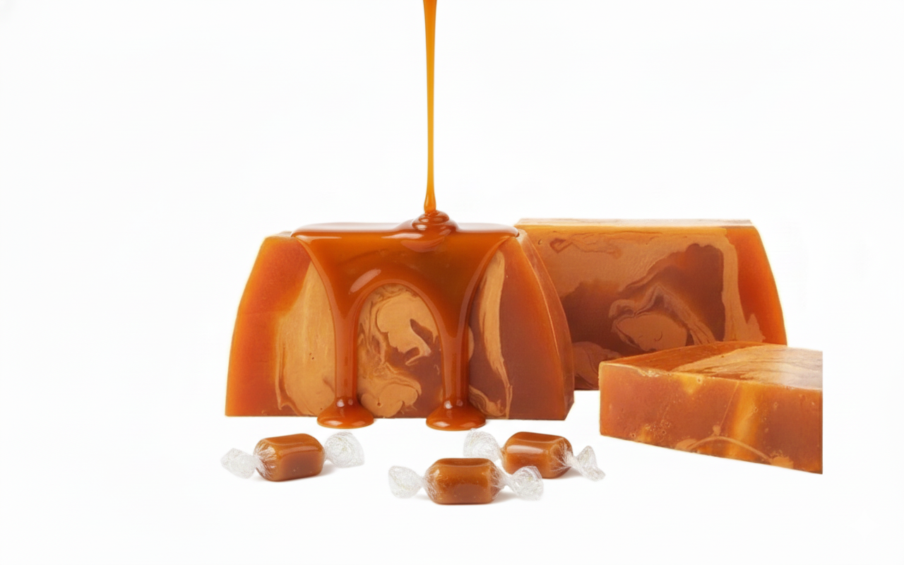 Savon tranché à la glycérine au parfum gourmand de caramel, pour un moment de douche sucré et enveloppant.