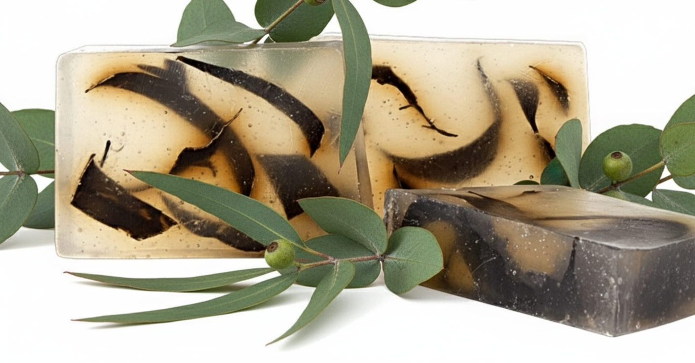 Savon tranché à la glycérine au parfum frais et revigorant d’eucalyptus, idéal pour une douche tonique et stimulante.