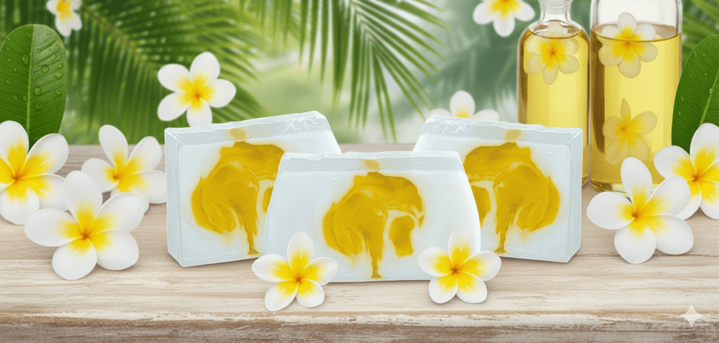 Savon tranché à la glycérine au parfum exotique et floral de Monoï, pour une douche douce et parfumée aux senteurs tropicales.
