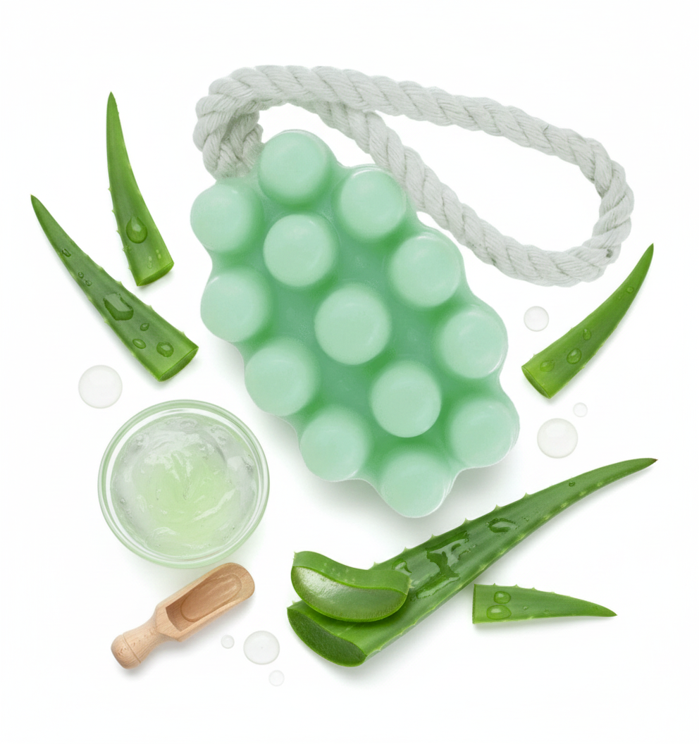 Formulé autour de l’Aloe vera, ce savon hydrate intensément et apaise la peau, tout en offrant un toucher doux lors du massage.